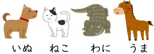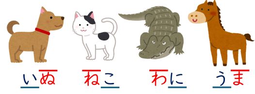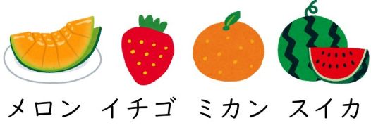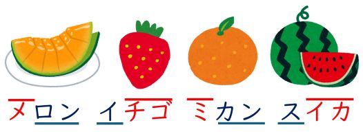 音の高低を意識して、うまく発音できたでしょうか。この結果を見ると、2拍の語は「いぬ」と「うま」が同じアクセント、「ねこ」と「わに」が同じアクセントということになります。3拍の語は、「メロン」と「ミカン」、「イチゴ」と「スイカ」がそれぞれ同じアクセントの形になっています。