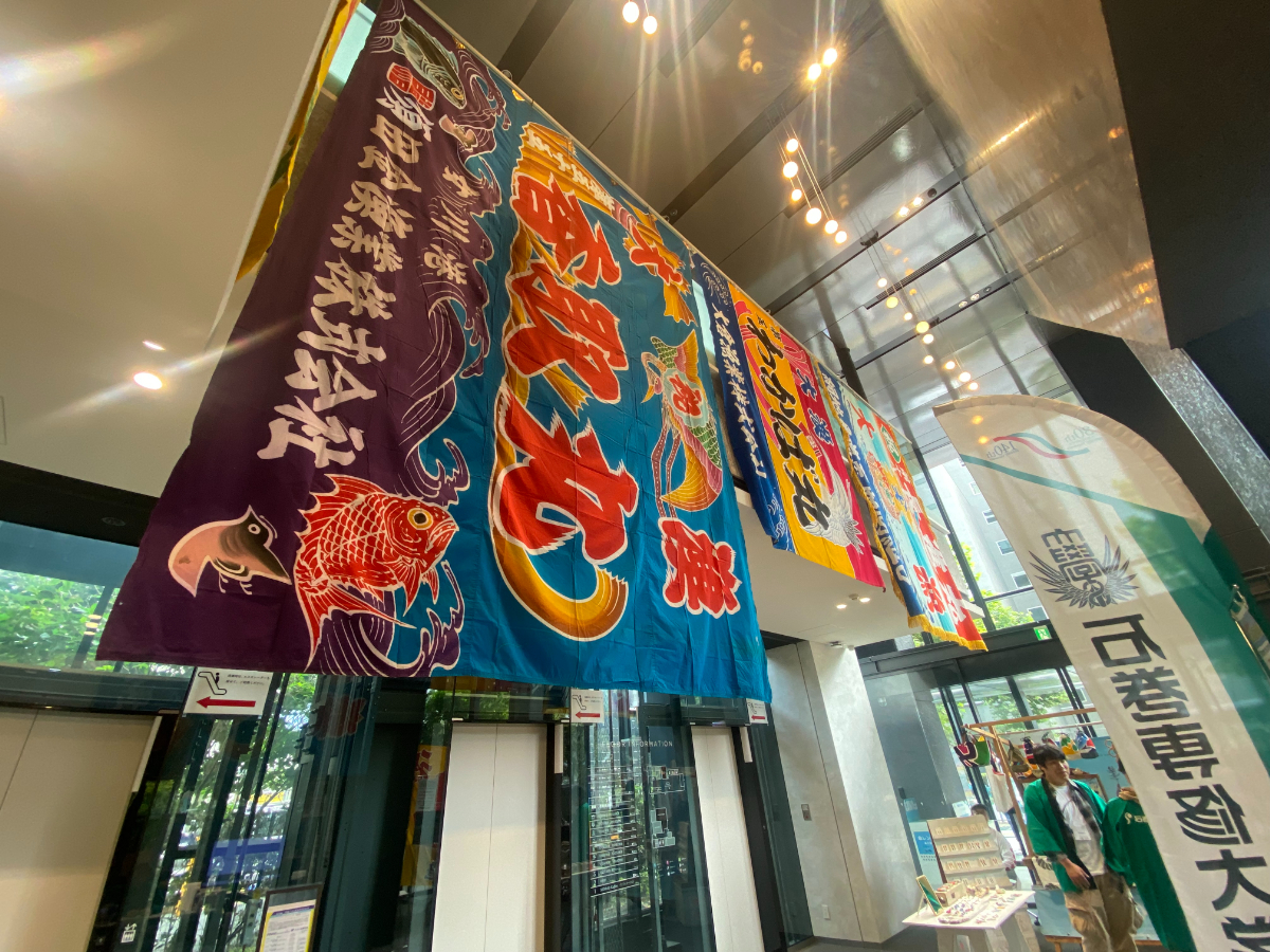 10号館には石巻市の大漁旗が掲げられました。