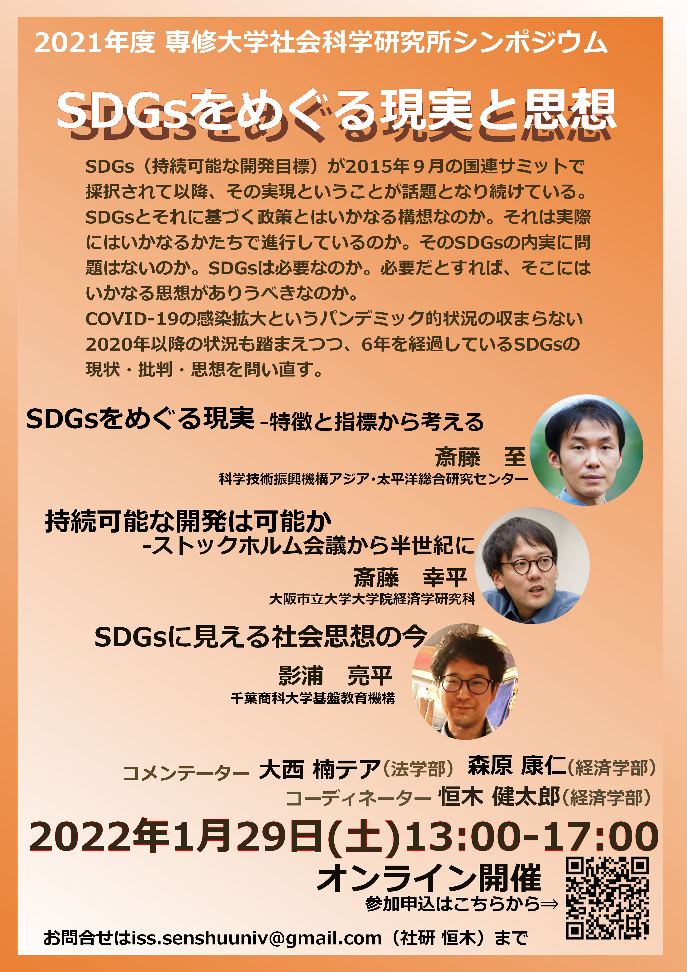 | テーマ | ―SDGsをめぐる現実と思想―(ポスター.png/登壇者プロフィール.pdf) |